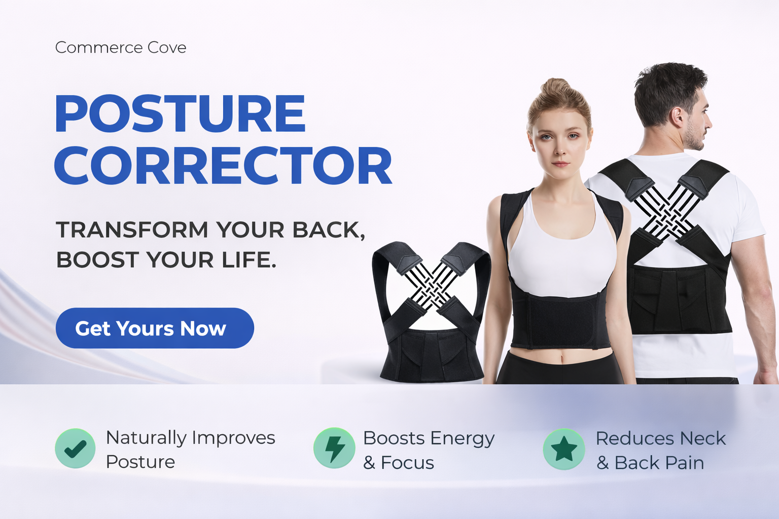 The Upright Posture Corrector helps align your spine and shoulders, reducing slouching. It trains your body to maintain good posture over time. It's comfortable, easy to wear under clothes, and adjustable, making it a simple solution for better posture